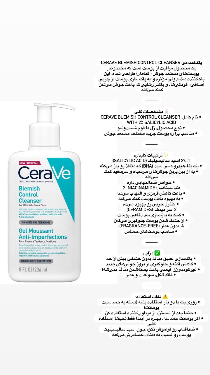پوست بینقص با شوینده سراوی Blemish Control Cleanser! فرمولاسیون ملایم این محصول، با حذف آلودگیها و چربیهای اضافی، پوست شما را از جوش و لکههای ناخواسته پاک میکند. تجربهی پوستی درخشان و تمیز را از دست ندهید!